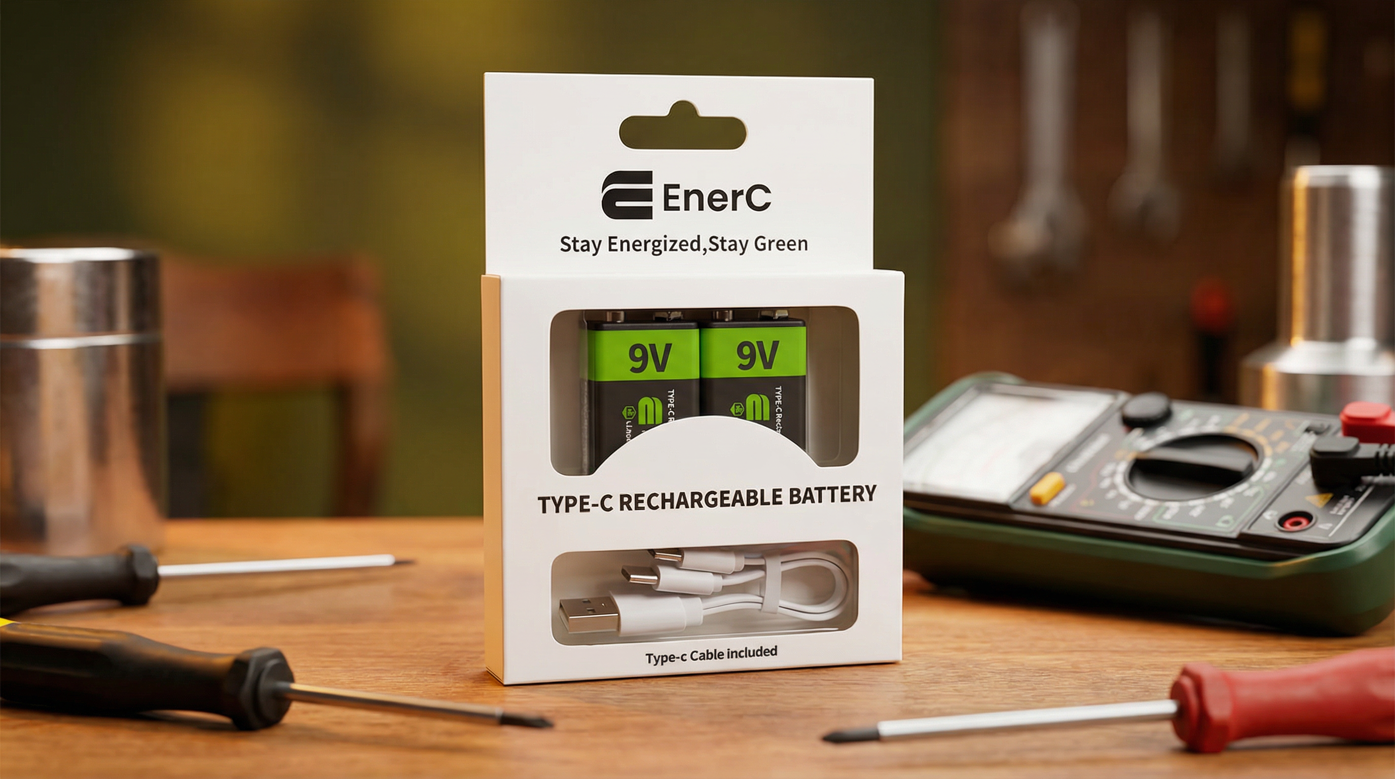 EnerC 9V Type-C Rechargeable Lithium-Ion Battery – 350 mAh 2 pack