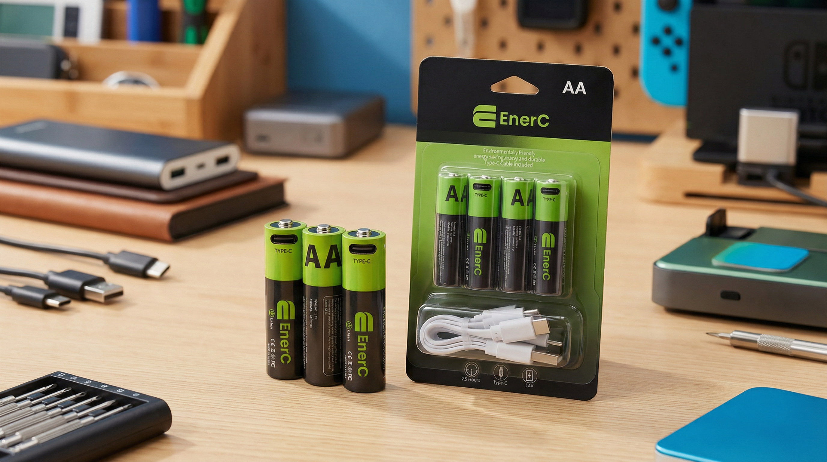 EnerC AA Type-C Rechargeable Lithium-Ion Battery – 2000 mAh 4 Pack