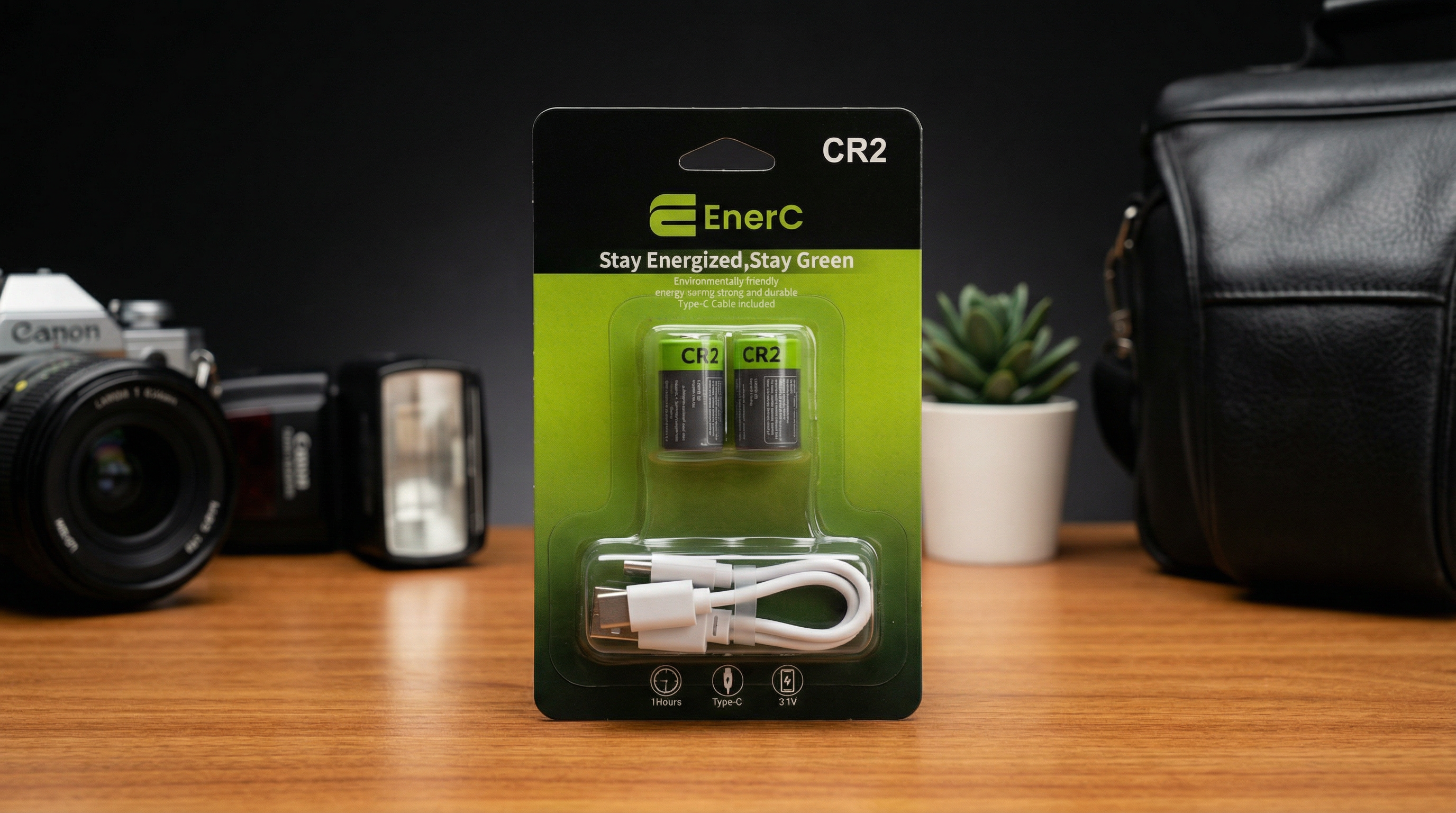 EnerC CR2 Type-C Rechargeable Lithium-Ion Battery – 370mAh (Type-C Charging | 1,200 Cycles)